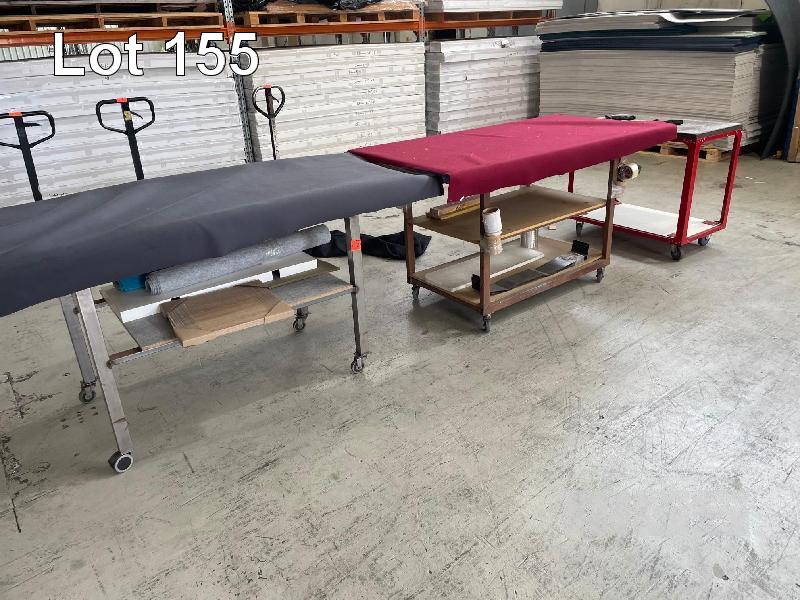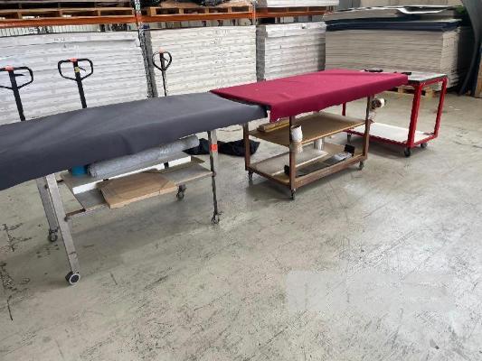 3 x MOBILE WORK TROLLEYS, PADDED 1800 x 800 x 1000m (H), 1800 x 900 x 1000mm (H) & 1000 x 600 x 800mm (H)