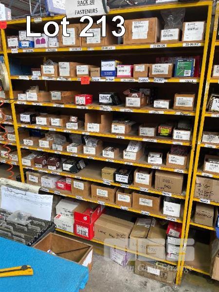 ASSORTED HARDWARE, SCREWS, FLOOR BOLTS, WASHERS, CONTENTS RACK, 8 x SHELVES