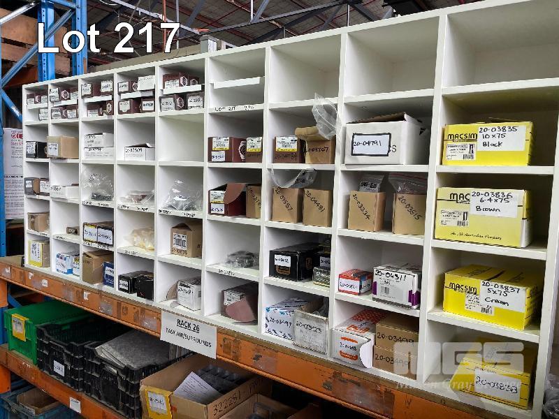 HARDWARE, NYLON SPACERS, WASHERS, NUTS, SCREWS, CONTENTS OF RACK PLUS CONTENTS OF WHITE PIGEON HOLES