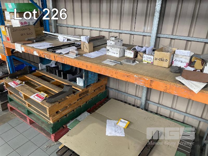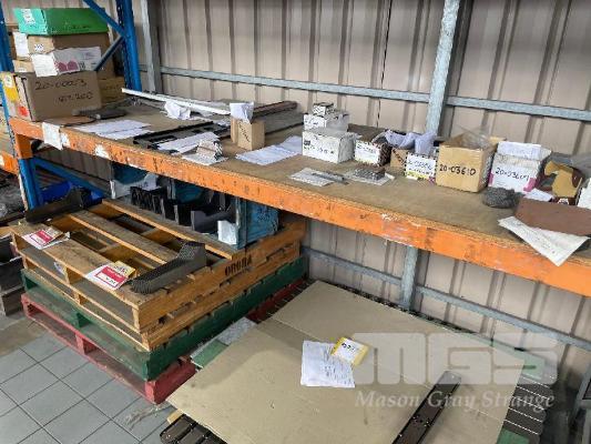 ASSORTED SMALL PARTS, CONTENTS 6 BAYS, STELE RACKETS, LEGS & BASES