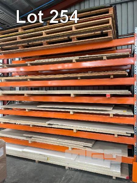 CONTENTS OF ONE RACK (NOT TOP SHELF) 36 x ASSORTED CHIP BOARD SECTIONS SOME LAMINATED VARIOUS SIZES