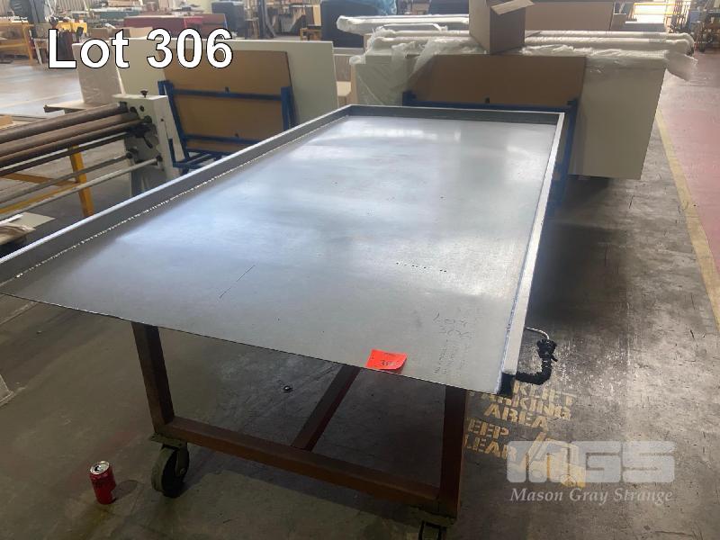 WORK TROLLEY, 2400 x 1200 x 3mm, PLATE TOP, MOBILE, 50 x 25mm RHS EDGING