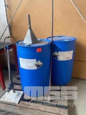 2 x 200 LITRE BLUE PLASTIC BARRELS, EMPTY NB: CORROSIVE CONTENTS