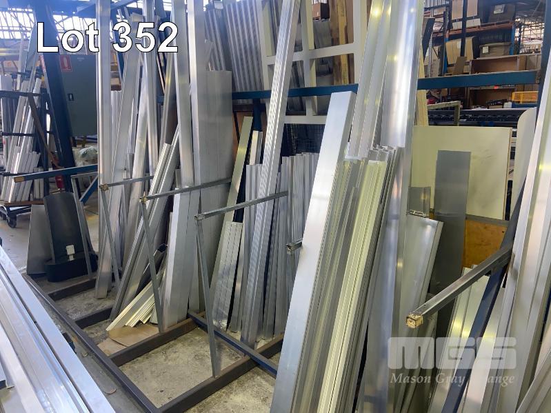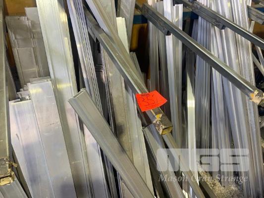 STOCK RACK, 7.7 (L) x 2.5 (H) x 1.1m (D) & CONTENTS OFFCUT ALUMINIUM EXTRUSION, WORK BENCH & STAND WITH CONTENTS