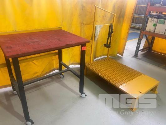 WORK BENCH, 1000 x 800 x 950mm STEEL FRAME, CHIPBOARD TOP, PADDED MOBILE, LOCK CASTORS
