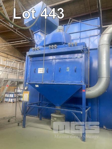 POWDER RECYCLING SYSTEM INCLUDING CYCLONE & BAG HOPPER UNIT WITH INFEED PIPE 350mm DIAMETER 9 x GOYEN VALVES, PNEUMATIC TOP MOUNT FAN 415V