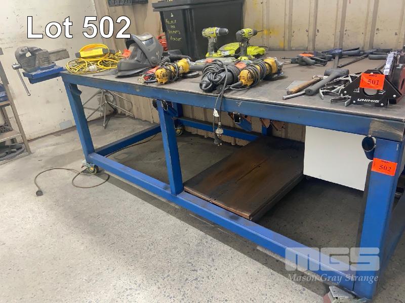 HEAVY DUTY WELDERS BENCH, 2400 x 1200 x 10mm PLATE TOP WITH 6" VICE, MOBILE WITH LOCKING CASTORS