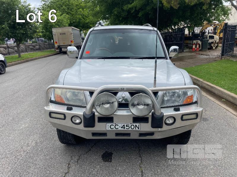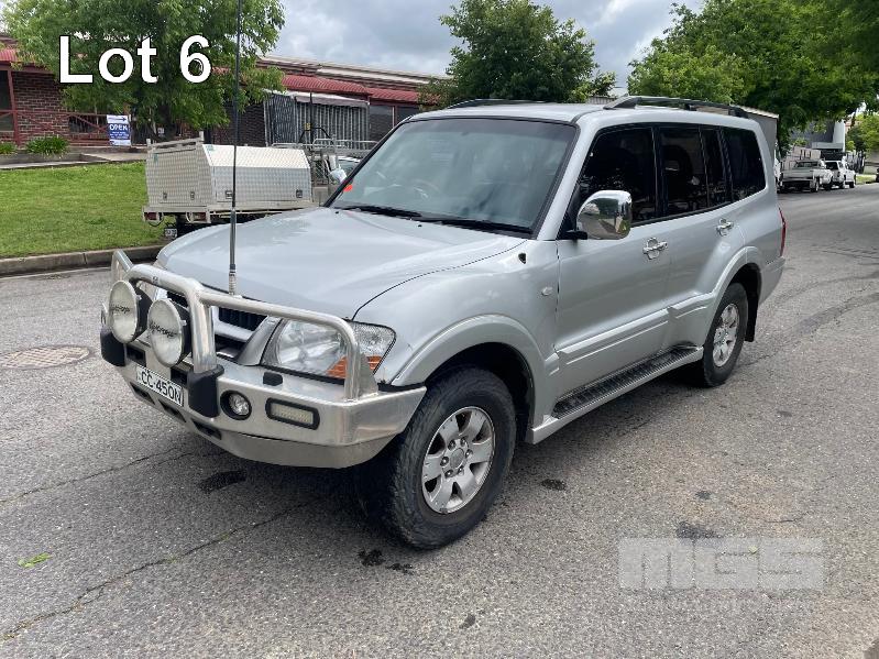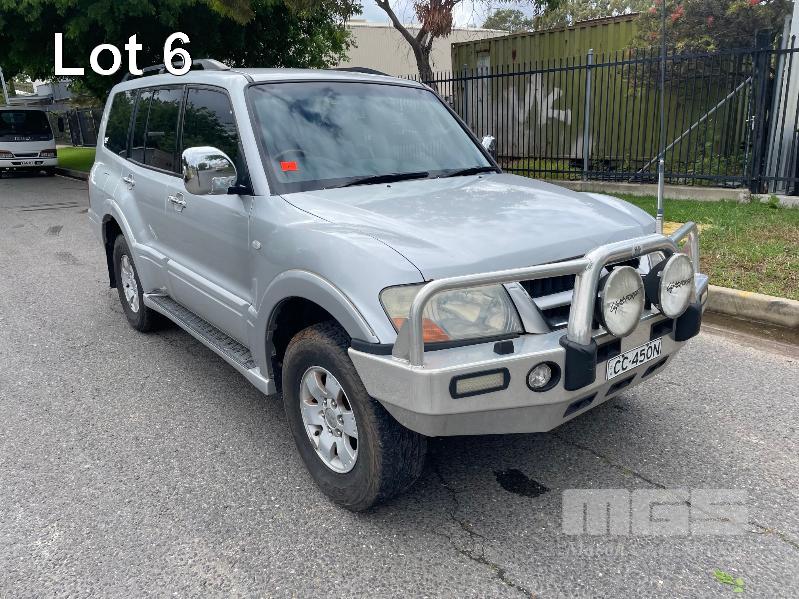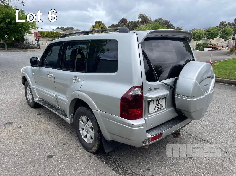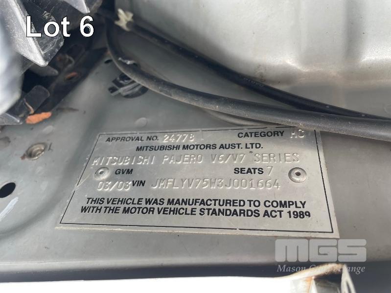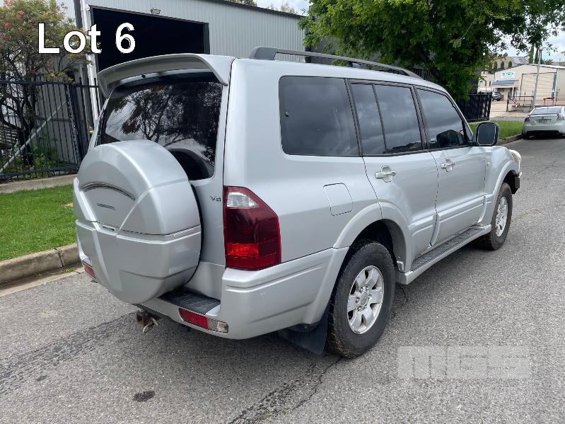 2003 MITSUBISHI PAJERO EXCEED NP WAGON 4X4 REG: CC450N (SA) VIN: JMFLYV75W3J001664 ODO: 281,255kms SHOWING 3.5L MPFI V6, 5 SPEED SPORTS AUTO, PETROL, SILVER DUCO, 5 DOORS, 7 SEAT, 4X4 ABS, AIR BAG, AIR CON, ALLOY WHEELS, BULL BAR, CENTRAL LOCKING, CRUISE CONTROL, FOG LAMPS, IMMOBILISER, POWER WINDOWS, ROOF RACKS, SIDE STEP, SPARE WHEEL, TRACTION CONTROL, REVERSE CAMERA, BAROMETER/ALTIMETER (WITH PAPERS, WITH 2 KEY/S, WITH OWNER'S MANUAL, WITH SERVICE BOOKS)