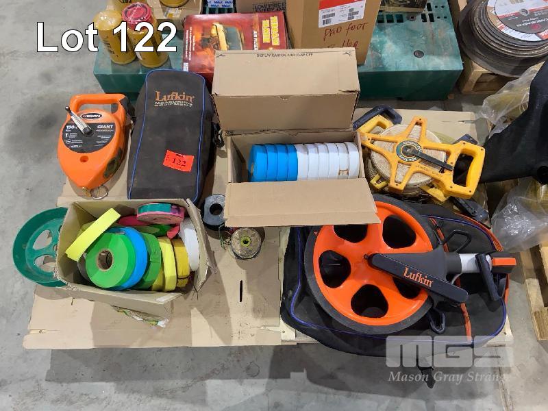 2 x LUFKIN MEASURING WHEELS, 3 x NICHOLSON TAPES, BUNTING TAPES & 46m KESON CHALK LINE REEL MOD: G150