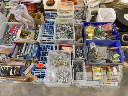 ASSORTED HARDWARE, NUTS, BOLTS, LOCSONS, SCREWS, 1.5 x PALLETS