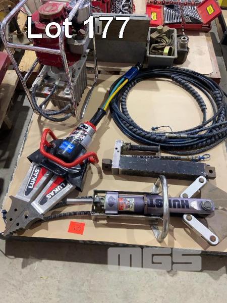 LUCAS HYDRAULIC SPREADER & HURST HYDRAULIC CUTTING HEAD WITH PETROL POWERED HYDRAULIC PUMP (NOWA POWDER) HURST HYDRAULIC RAM