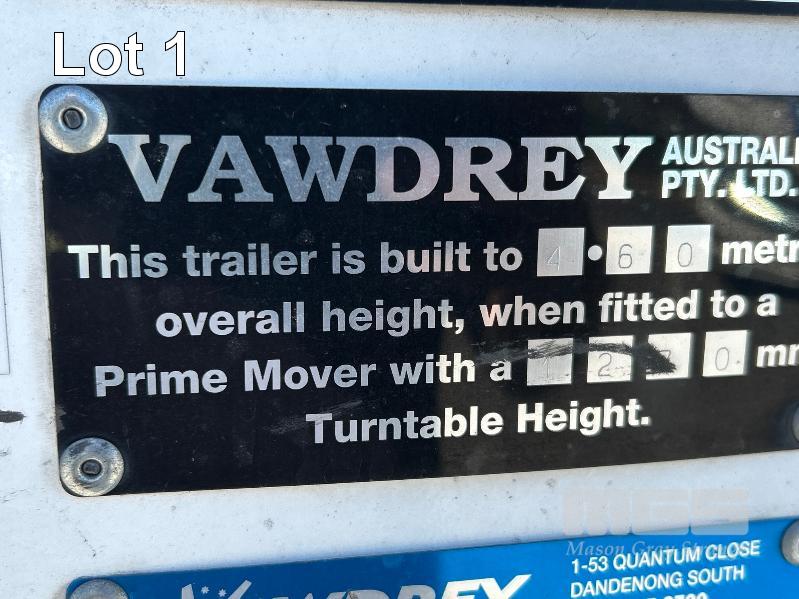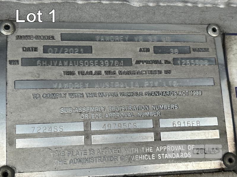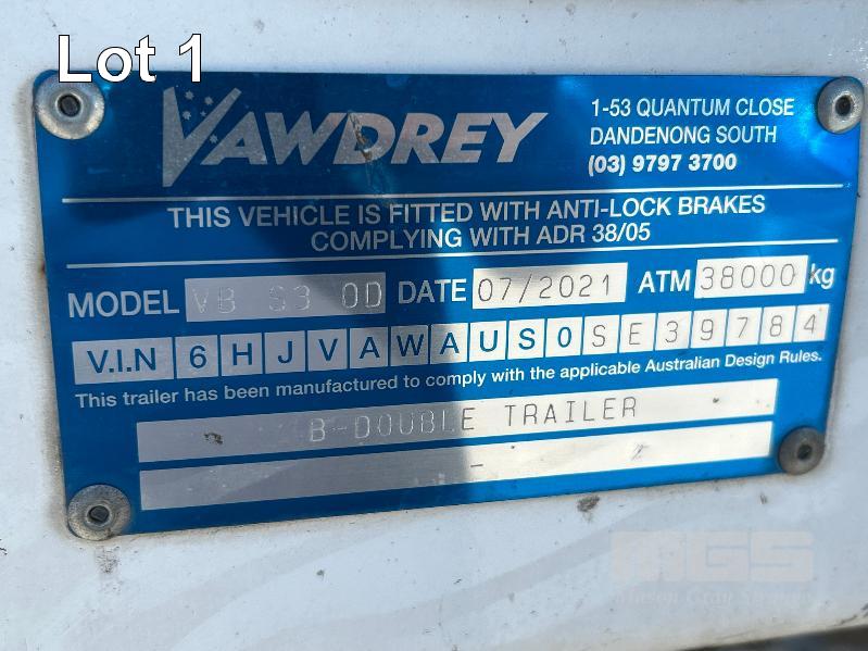 2021 VAWDREY 36' TRI-AXLE TAUTLINER DROP DECK A TRAILER MODEL: VB S3 00 TITELINER REG: YV 69 MF VIN / CHASSIS: 6HJVAWAUS0SE39784 ATM: 38 TONNE AIRBAG SUSPENSION, 275/70R22.5, B DOUBLE TITELINER GATES & NOSE CONE TRAILER HEIGHT: 4.6m (NO PAPERS)