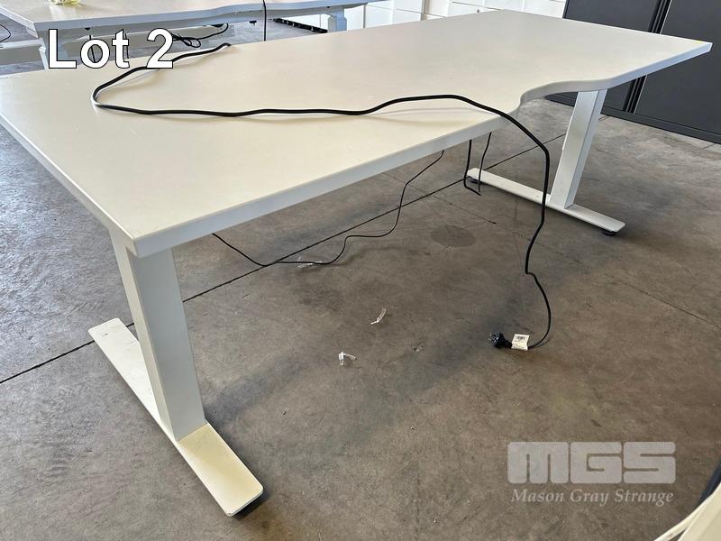 ELECTRIC HEIGHT ADJUSTABLE OFFICE DESK, WHITE LAMINATE TOP, WHITE STEEL FRAME, 180 x 75cm