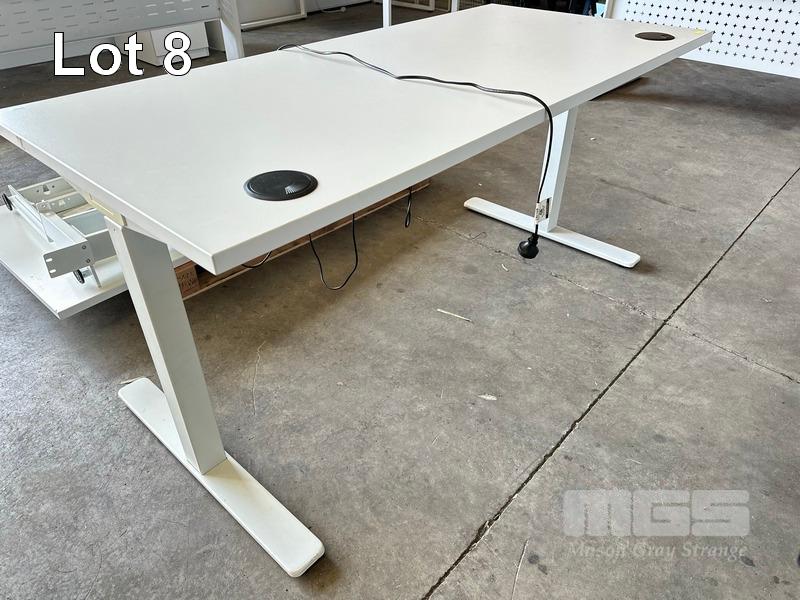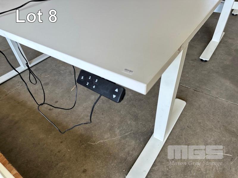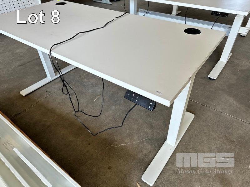ELECTRIC HEIGHT ADJUSTABLE OFFICE DESK, WHITE LAMINATE TOP, WHITE STEEL FRAME, 150 x 70cm