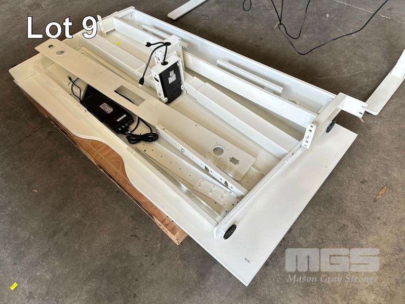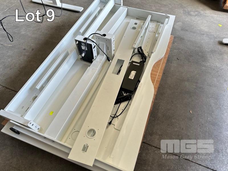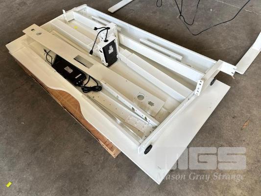 DISMANTLED ELECTRIC HEIGHT ADJUSTABLE OFFICE DESK, WHITE LAMINATE TOP, WHITE STEEL FRAME, 150 x 75cm (NOTE: INCOMPLETE)