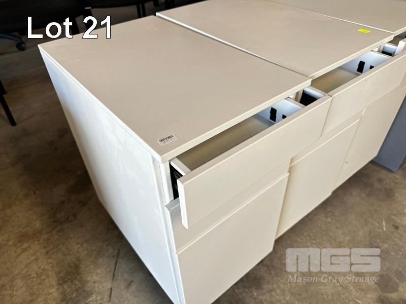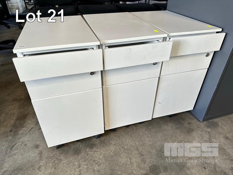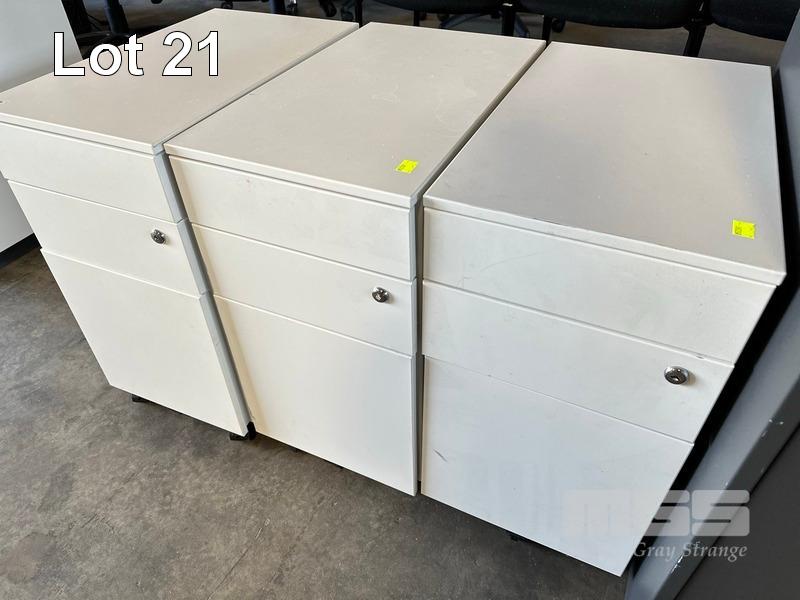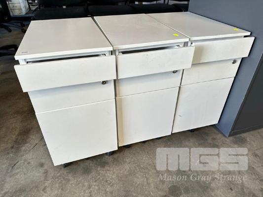 3 x UNDERDESK MOBILE PEDESTALS, 3 DRAWER, WHITE STEEL, LOCKABLE (NO KEYS)