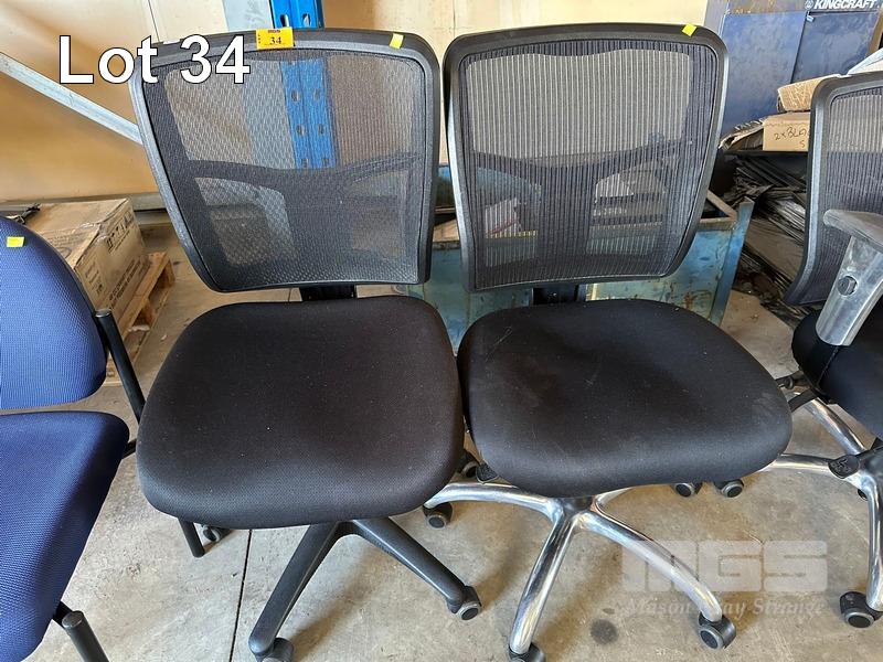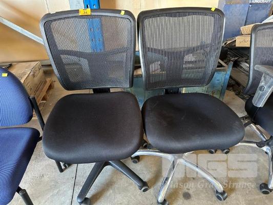 2 x OFFICE CHAIRS, BLACK FABRIC, MESH BACK