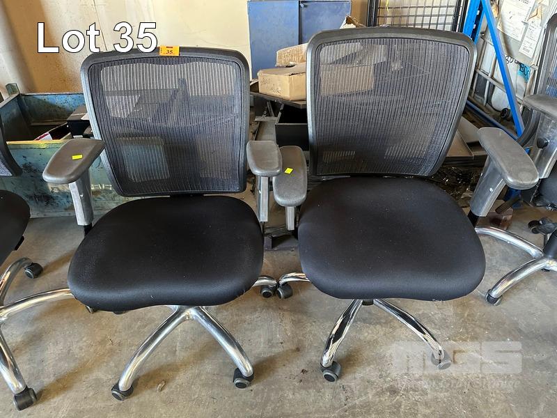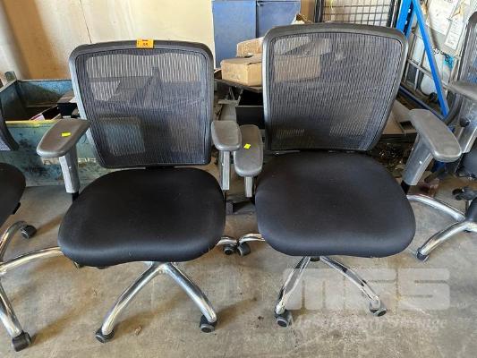 2 x OFFICE ARM CHAIRS, BLACK FABRIC, MESH BACK
