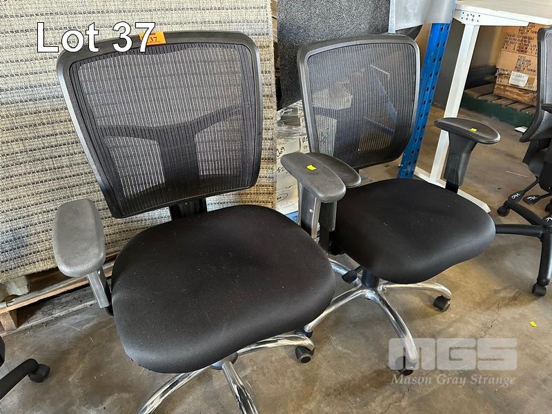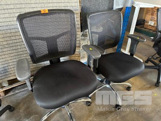 2 x OFFICE ARM CHAIRS, BLACK FABRIC, MESH BACK