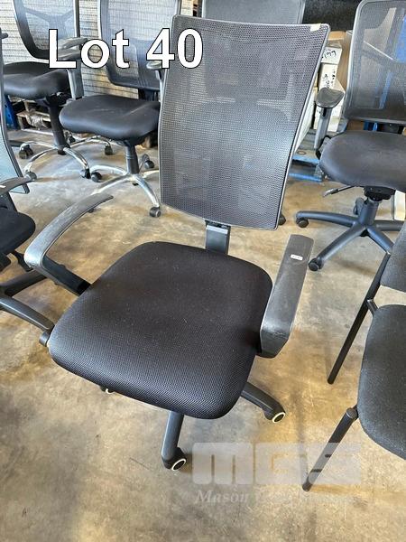 OFFICE ARM CHAIR, BLACK FABRIC, MESH BACK