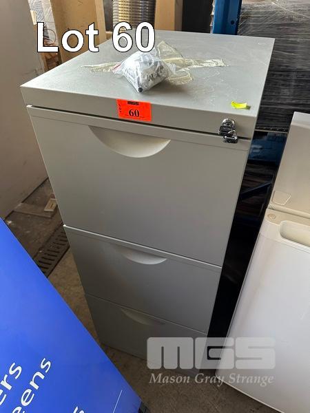 FILING CABINET, 3 DRAWER, GREY STEEL, LOCKABLE WITH KEY