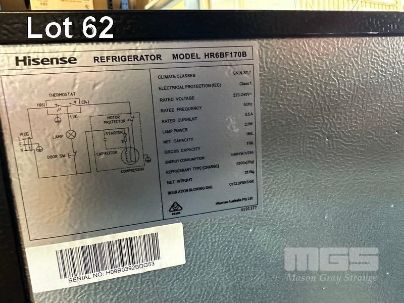 HISENSE 170 LITRE BAR FRIDGE, HR6BF170B (NOTE: NEEDS A CLEAN)
