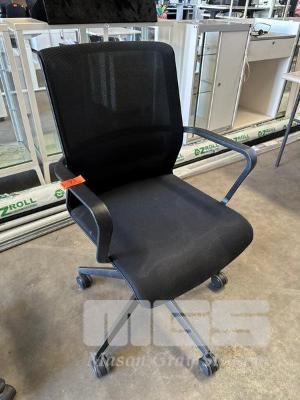 OFFICE ARM CHAIR, BLACK FABRIC, MESH BACK