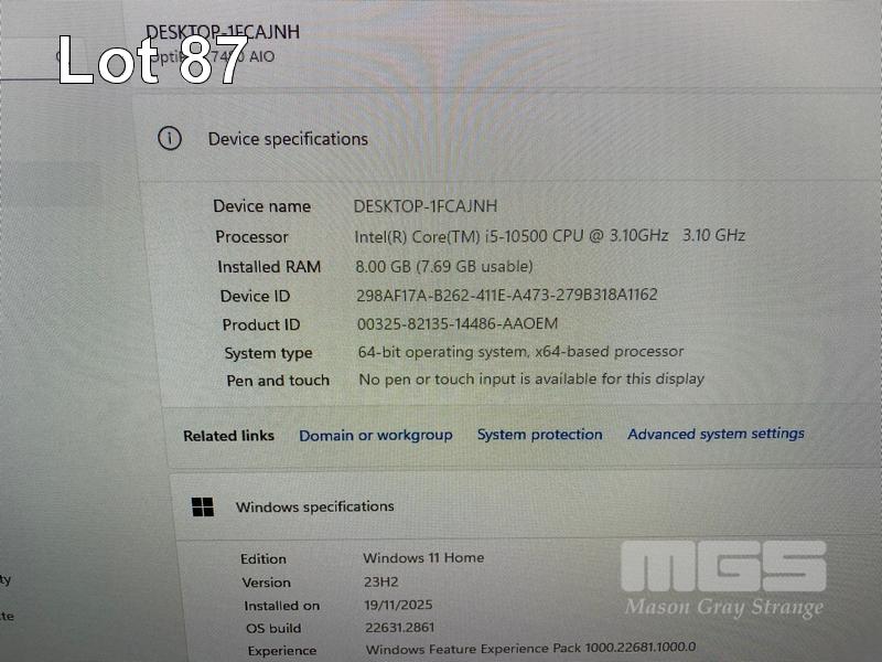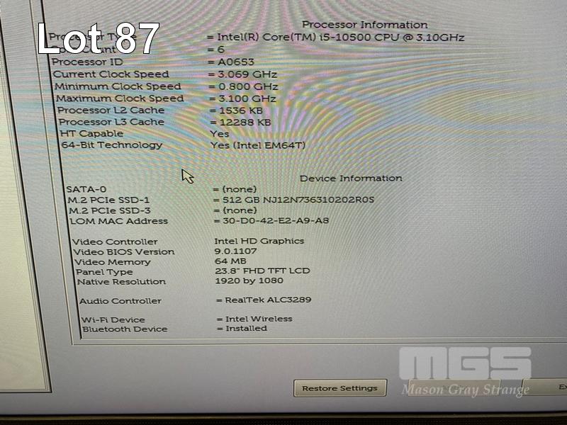ALL-IN-ONE PC, DELL OPTIPLEX 7480, CORE i5 10500 (10TH GEN) @ 3.1GHz, 8GB DDR4 RAM, 512GB NVMe M.2 SSD, INBUILT 23.8" FHD WIDESCREEN (1920x1080), INTEL HD VIDEO, WEBCAM, 5 x USB, 1 x USB-C, Wi-Fi, BLUETOOTH, WINDOWS 11 HOME INSTALLED, KEYBOARD & MOUSE S/N:BKMWVD3