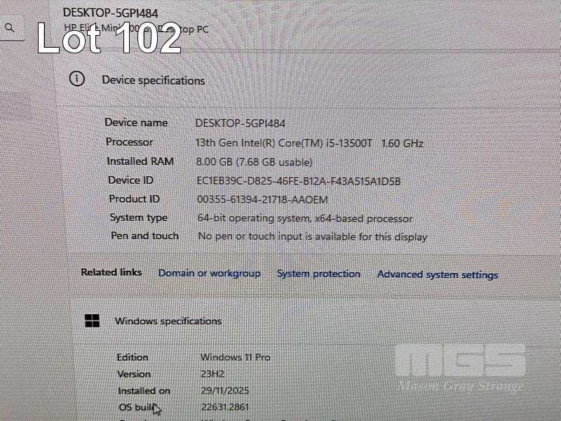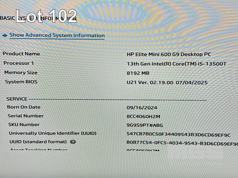 DESKTOP PC, HP ELITE MINI 600 G9, CORE i5 13500T (13TH GEN) @ 1.6GHz, 8GB DDR5 RAM, 256GB NVMe M.2 SSD, Wi-Fi, BLUETOOTH, WINDOWS 11 PRO INSTALLED, WIRELESS KEYBOARD, MOUSE & POWER SUPPLY S/N:8CC4060H2M