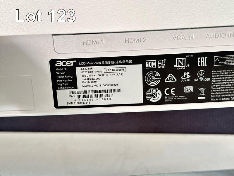 MONITOR, ACER ET322QR 31.5" CURVED WQHD LED WIDESCREEN, HDMI, VGA (WITH CABLES) S/N:91001242442