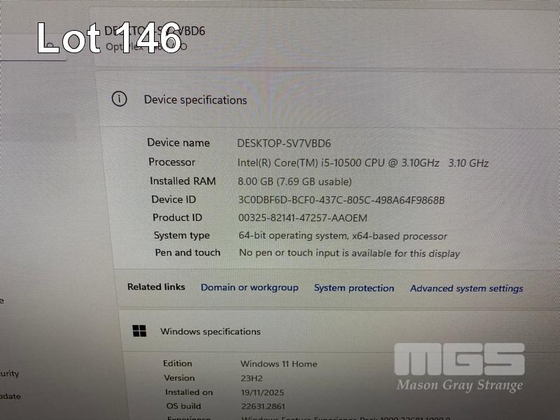 ALL-IN-ONE PC, DELL OPTIPLEX 7480, CORE i5 10500 (10TH GEN) @ 3.1GHz, 8GB DDR4 RAM, 512GB NVMe M.2 SSD, INBUILT 23.8" FHD WIDESCREEN (1920x1080), INTEL HD VIDEO, WEBCAM, 5 x USB, 1 x USB-C, Wi-Fi, BLUETOOTH, WINDOWS 11 HOME INSTALLED, KEYBOARD & MOUSE S/N:9DT54F3
