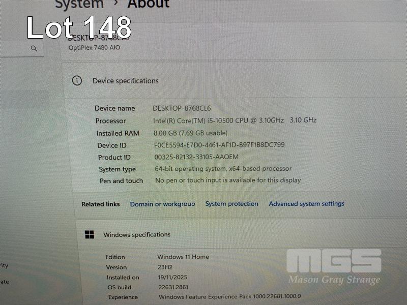ALL-IN-ONE PC, DELL OPTIPLEX 7480, CORE i5 10500 (10TH GEN) @ 3.1GHz, 8GB DDR4 RAM, 512GB NVMe M.2 SSD, INBUILT 23.8" FHD WIDESCREEN (1920x1080), INTEL HD VIDEO, WEBCAM, 5 x USB, 1 x USB-C, Wi-Fi, BLUETOOTH, WINDOWS 11 HOME INSTALLED, KEYBOARD & MOUSE S/N:3WB2TD3