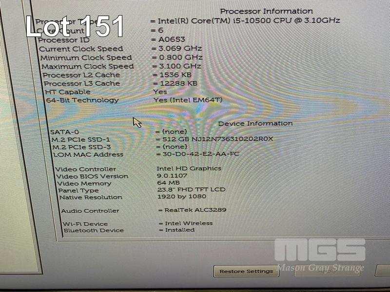 ALL-IN-ONE PC, DELL OPTIPLEX 7480, CORE i5 10500 (10TH GEN) @ 3.1GHz, 8GB DDR4 RAM, 512GB NVMe M.2 SSD, INBUILT 23.8" FHD WIDESCREEN (1920x1080), INTEL HD VIDEO, WEBCAM, 5 x USB, 1 x USB-C, Wi-Fi, BLUETOOTH, WINDOWS 11 HOME INSTALLED, KEYBOARD & MOUSE S/N:BLMWVD3