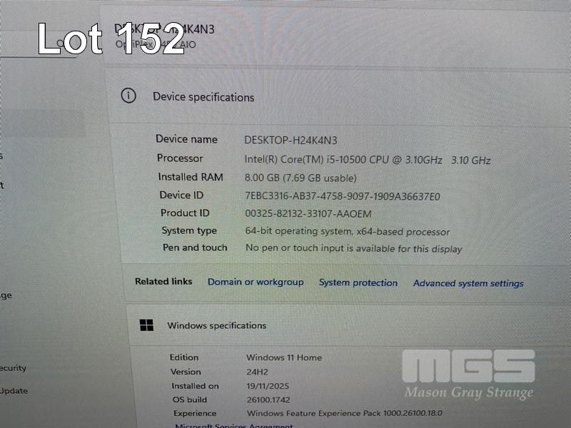 ALL-IN-ONE PC, DELL OPTIPLEX 7480, CORE i5 10500 (10TH GEN) @ 3.1GHz, 8GB DDR4 RAM, 512GB NVMe M.2 SSD, INBUILT 23.8" FHD WIDESCREEN (1920x1080), INTEL HD VIDEO, WEBCAM, 5 x USB, 1 x USB-C, Wi-Fi, BLUETOOTH, WINDOWS 11 HOME INSTALLED, KEYBOARD & MOUSE S/N:5WB2TD3