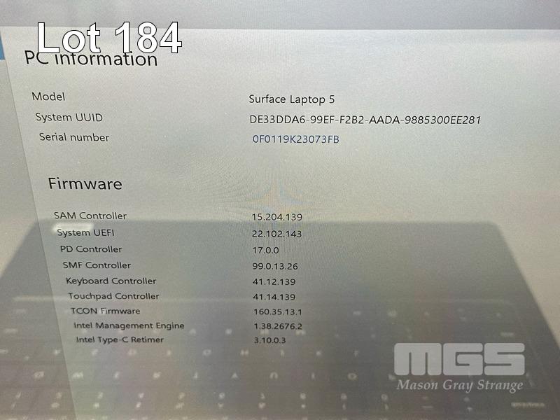 LAPTOP, MICROSOFT SURFACE 5, MODEL 1951, CORE i5 1235U (12TH GEN) @ 2.5GHz, 16GB DDR5 RAM, 512GB NVMe M.2 SSD, 13.5" TOUCHSCREEN (2256x1504), INTEL IRIS Xe GRAPHICS, Wi-Fi, BLUETOOTH, WINDOWS 11 HOME INSTALLED & POWER SUPPLY S/N:0F0119K23073FB