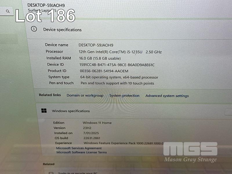 LAPTOP, MICROSOFT SURFACE 5 (SANDSTONE), MODEL 1951, CORE i5 1235U (12TH GEN) @ 2.5GHz, 16GB DDR5 RAM, 512GB NVMe M.2 SSD, 13.5" TOUCHSCREEN (2256x1504), INTEL IRIS Xe GRAPHICS, Wi-Fi, BLUETOOTH, WINDOWS 11 HOME INSTALLED & POWER SUPPLY S/N:0F00A3R22313FB