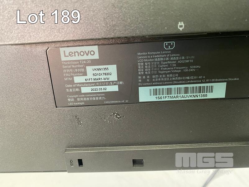 MONITOR, LENOVO THINKVISION T24i-20 23.8" IPS FHD LED WIDESCREEN, HDMI, DISPLAYPORT, VGA (WITH CABLES) (NO HDMI CABLE) S/N:1S61F7MAR1AUVKNN1355