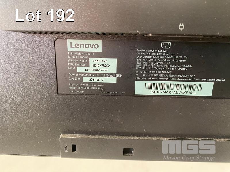 MONITOR, LENOVO THINKVISION T24i-20 23.8" IPS FHD LED WIDESCREEN, HDMI, DISPLAYPORT, VGA (WITH CABLES) (NO HDMI CABLE) S/N:1S61F7MAR1AUVKKF1822