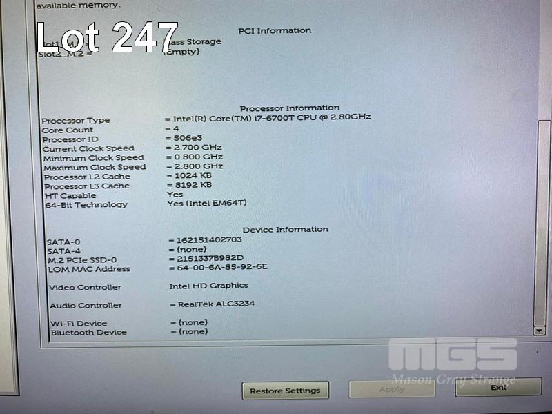 DESKTOP PC, DELL OPTIPLEX 7040 MICRO, CORE i7 6700T (6TH GEN) @ 2.8GHz, 8GB DDR4 RAM, 1TB NVMe M.2 SSD, 128GB SSD, INTEL HD VIDEO, 6 x USB, WINDOWS 10 PRO INSTALLED (NO PRODUCT KEY) & POWER SUPPLY (65W) (NO KEYBOARD, NO MOUSE) S/N:7PQR7C2