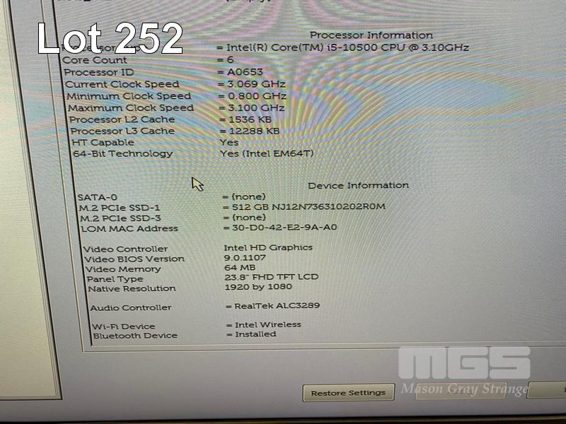 ALL-IN-ONE PC, DELL OPTIPLEX 7480, CORE i5 10500 (10TH GEN) @ 3.1GHz, 8GB DDR4 RAM, 512GB NVMe M.2 SSD, INBUILT 23.8" FHD WIDESCREEN (1920x1080), INTEL HD VIDEO, WEBCAM, 5 x USB, 1 x USB-C, Wi-Fi, BLUETOOTH, WINDOWS 11 HOME INSTALLED, KEYBOARD & MOUSE S/N:GKMWVD3