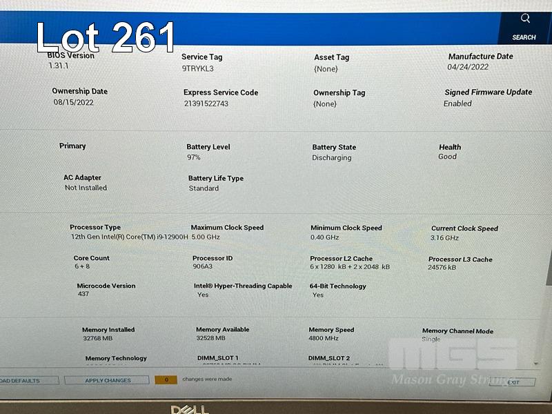LAPTOP, DELL PRECISION 3571, CORE i9 12900H (12TH GEN) @ 2.5GHz, 32GB DDR5 RAM, 512GB NVMe M.2 SSD, 15.6" WIDESCREEN (1920x1080), 4GB NVIDIA T600 VIDEO, Wi-Fi, BLUETOOTH, WINDOWS 11 PRO INSTALLED, USB-C POWER SUPPLY & CARRY BAG S/N:9TRYKL3