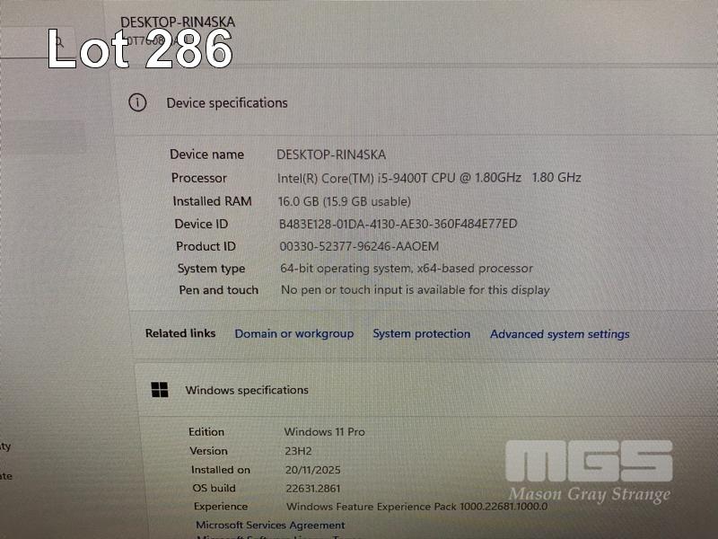 TINY-IN-ONE PC, LENOVO THINKCENTRE M720q, TYPE 10T7, CORE i5 9400T (9TH GEN) @ 1.8GHz, 16GB DDR4 RAM, 256GB NVMe M.2 SSD, LENOVO TIO24Gen3 23.8" LED-BL LCD WIDESCREEN, WEBCAM, Wi-Fi, BLUETOOTH, WINDOWS 11 PRO INSTALLED, CORDLESS KEYBOARD, MOUSE & POWER SUPPLY S/N:PC1AJJQA