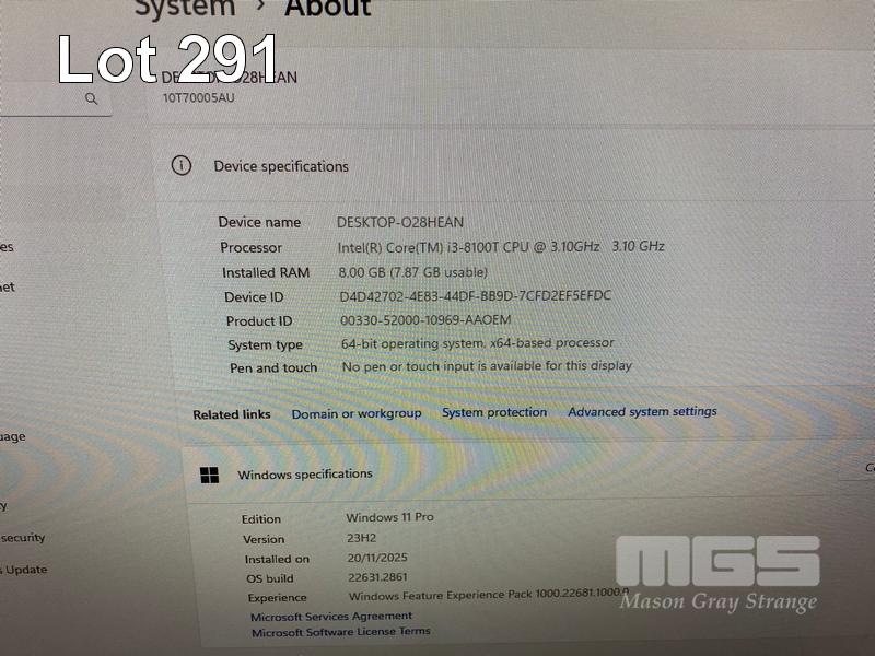 TINY-IN-ONE PC, LENOVO THINKCENTRE M720q, TYPE 10T7, CORE i3 8100T (8TH GEN) @ 3.1GHz, 8GB DDR4 RAM, 256GB NVMe M.2 SSD, LENOVO TIO24Gen3 23.8" LED-BL LCD WIDESCREEN, WEBCAM, Wi-Fi, BLUETOOTH, WINDOWS 11 PRO INSTALLED, CORDLESS KEYBOARD, MOUSE & POWER SUPPLY S/N:PC155FFQ