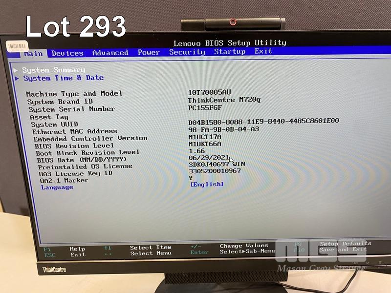 TINY-IN-ONE PC, LENOVO THINKCENTRE M720q, TYPE 10T7, CORE i3 8100T (8TH GEN) @ 3.1GHz, 8GB DDR4 RAM, 256GB NVMe M.2 SSD, LENOVO TIO24Gen3 23.8" LED-BL LCD WIDESCREEN, WEBCAM, Wi-Fi, BLUETOOTH, WINDOWS 11 PRO INSTALLED, CORDLESS KEYBOARD, MOUSE & POWER SUPPLY S/N:PC155FGF