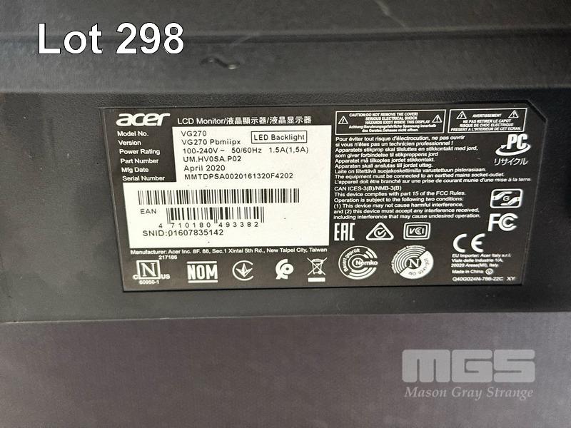 MONITOR, ACER NITRO VG270 27" FHD GAMING WIDESCREEN, HDMI, DISPLAYPORT (WITH CABLES) S/N:01607835142