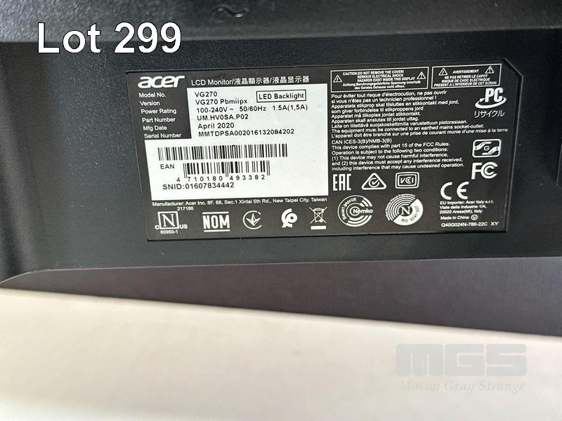 MONITOR, ACER NITRO VG270 27" FHD GAMING WIDESCREEN, HDMI, DISPLAYPORT (WITH CABLES) S/N:01607834442