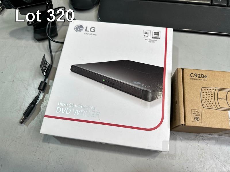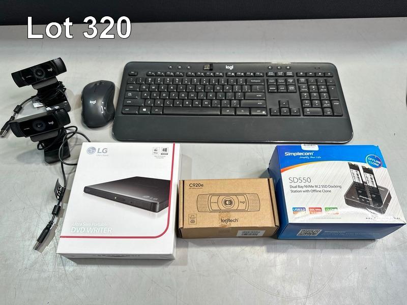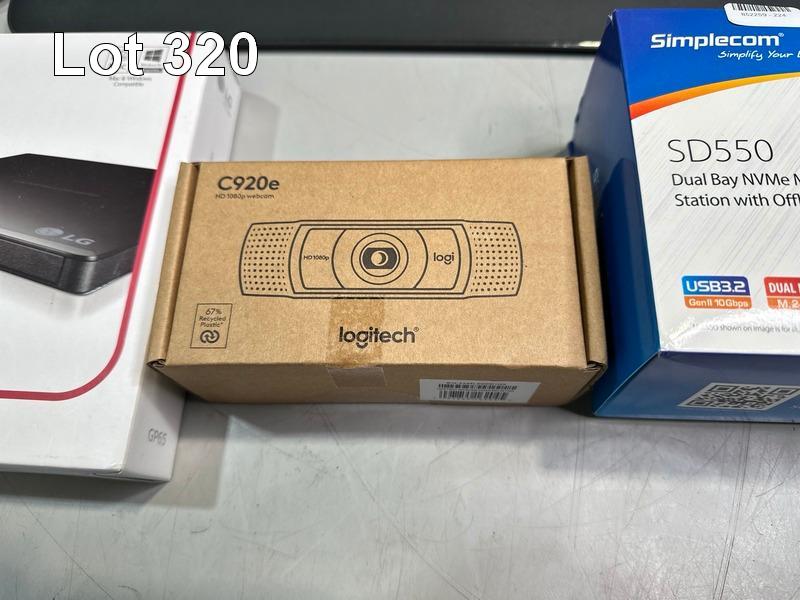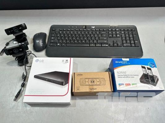 SIMPLECOM SD550 DUAL BAY NVMe M.2 SSD DOCKING STATION, 3 x LOGITECH C920 WEBCAMS, LG ULTRA SLIM PORTABLE DVD WRITER, LOGITECH K545 CORDLESS KEYBOARD & M510 CORDLESS MOUSE