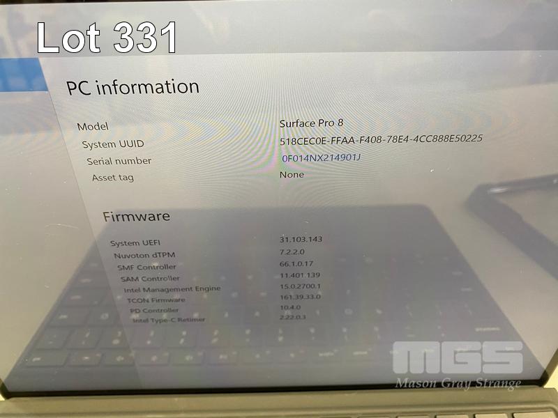 TABLET PC, MICROSOFT SURFACE PRO 8, MODEL 1982, CORE i5 1145G7 (11TH GEN) @ 2.6GHz, 16GB DDR4 RAM, 256GB NVMe M.2 SSD, 13" TOUCHSCREEN (2880x1920), INTEL IRIS Xe GRAPHICS, Wi-Fi, CELLULAR, BLUETOOTH, WINDOWS 11 PRO INSTALLED, KEYBOARD TYPE COVER, CASE & POWER SUPPLY S/N:0F014NX214901J