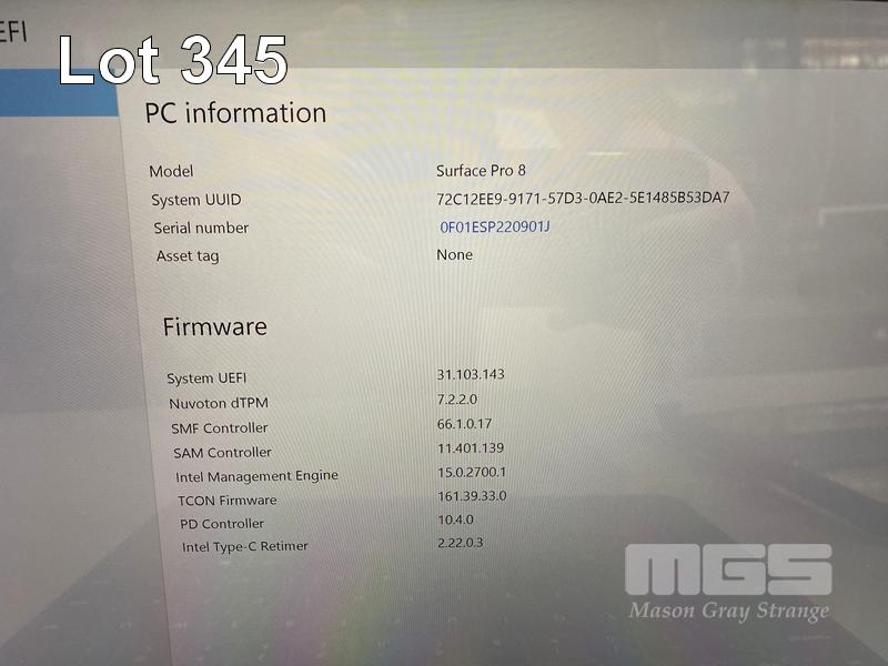 TABLET PC, MICROSOFT SURFACE PRO 8, MODEL 1982, CORE i5 1145G7 (11TH GEN) @ 2.6GHz, 16GB DDR4 RAM, 256GB NVMe M.2 SSD, 13" TOUCHSCREEN (2880x1920), INTEL IRIS Xe GRAPHICS, Wi-Fi, CELLULAR, BLUETOOTH, WINDOWS 11 PRO INSTALLED, KEYBOARD TYPE COVER, CASE & POWER SUPPLY S/N:0F01ESP220901J