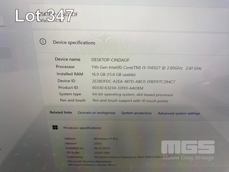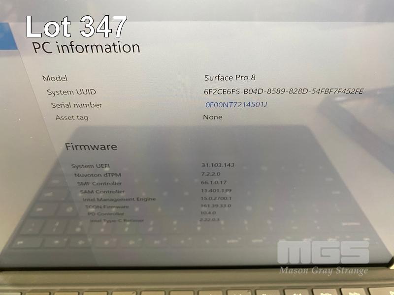 TABLET PC, MICROSOFT SURFACE PRO 8, MODEL 1982, CORE i5 1145G7 (11TH GEN) @ 2.6GHz, 16GB DDR4 RAM, 256GB NVMe M.2 SSD, 13" TOUCHSCREEN (2880x1920), INTEL IRIS Xe GRAPHICS, Wi-Fi, CELLULAR, BLUETOOTH, WINDOWS 11 PRO INSTALLED, KEYBOARD TYPE COVER, CASE & POWER SUPPLY (NOTE: BRIGHT SPOT ON SCREEN) S/N:0F00NT7214501J